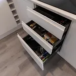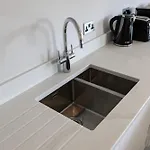 Dotée d'une cafetière/théière, la cuisine complète est également équipée de micro-ondes, d'un réfrigérateur et de verrerie.